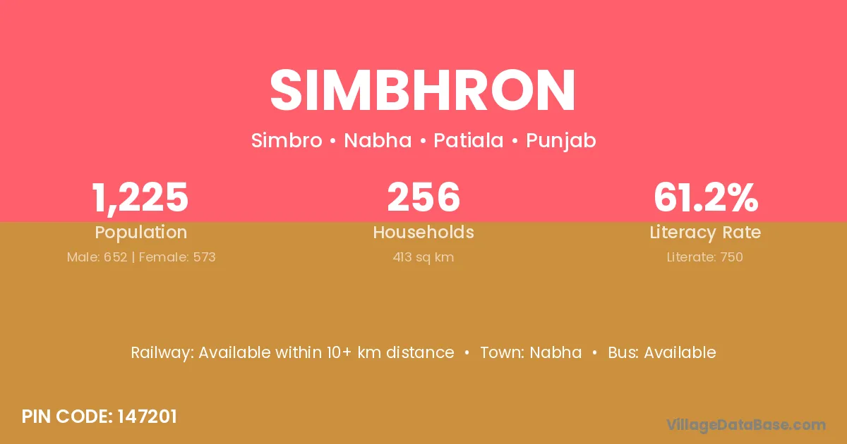 According to Census 2011 information, the village code of Simbhron village is 147201.