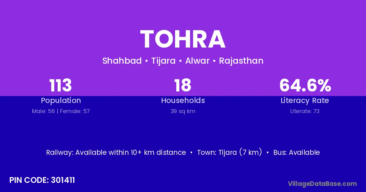 According to Census 2011 information, the village code of Tohra village is 147104.