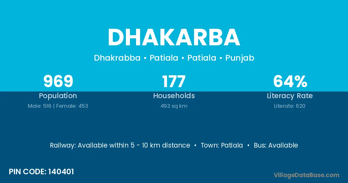 Patiala is the nearest town to Dhakarba village for major economic activities