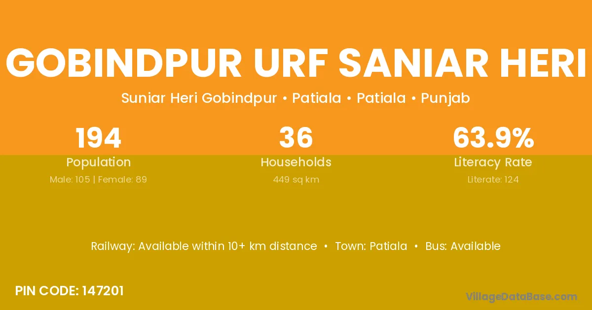 Patiala is the nearest town to Gobindpur Urf Saniar Heri village for major economic activities