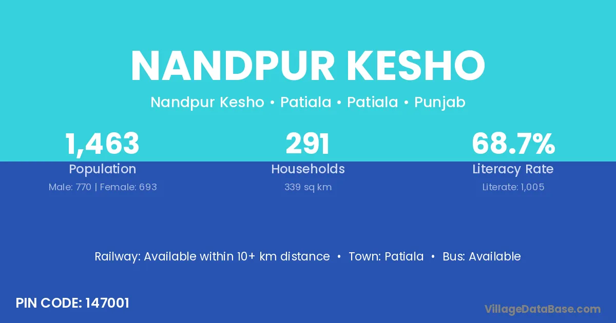 Nandpur Kesho village has a total population of 1,463 people, of which 770 are males and 693 are females.