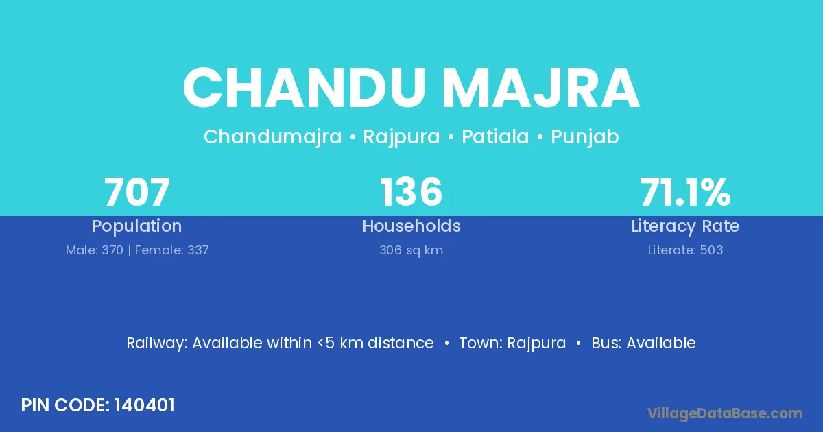 Chandu Majra village has a total population of 707 people, of which 370 are males and 337 are females.