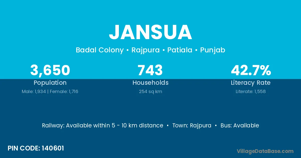 Rajpura is the nearest town to Jansua village for major economic activities