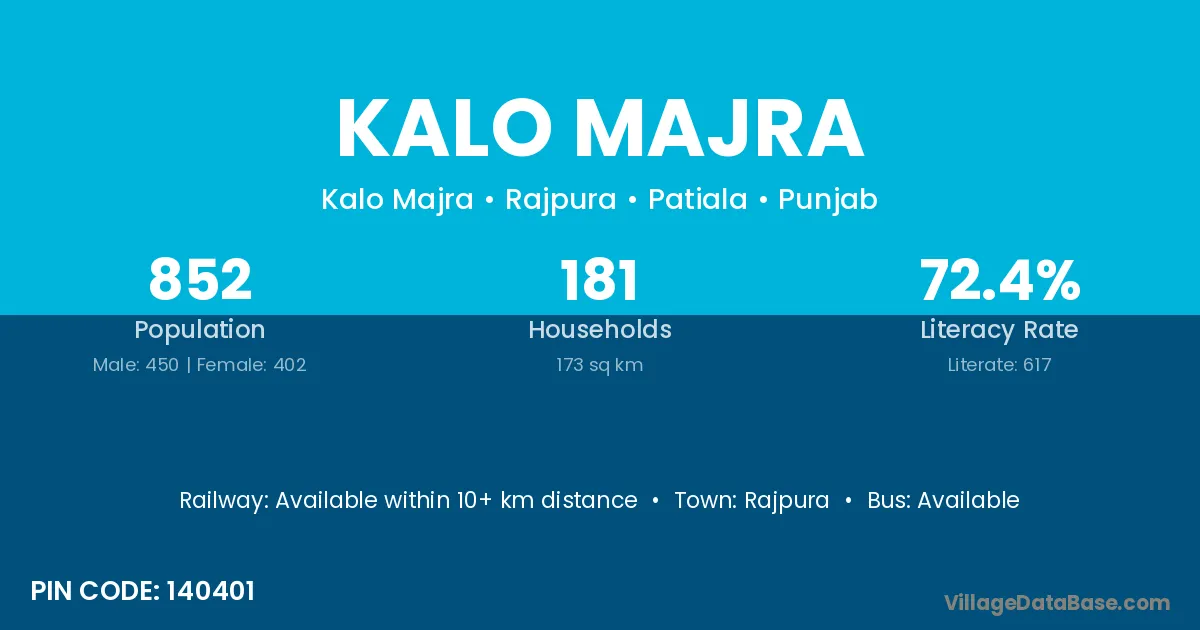 Rajpura is the nearest town to Kalo Majra village for major economic activities