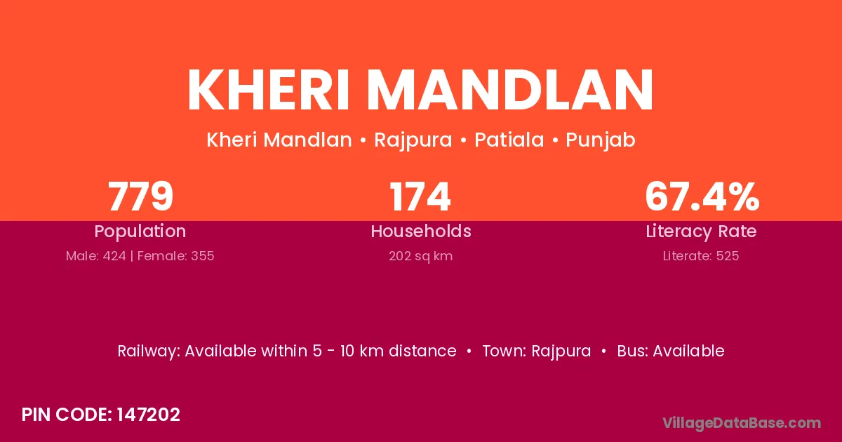 According to Census 2011 information, the village code of Kheri Mandlan village is 147202.