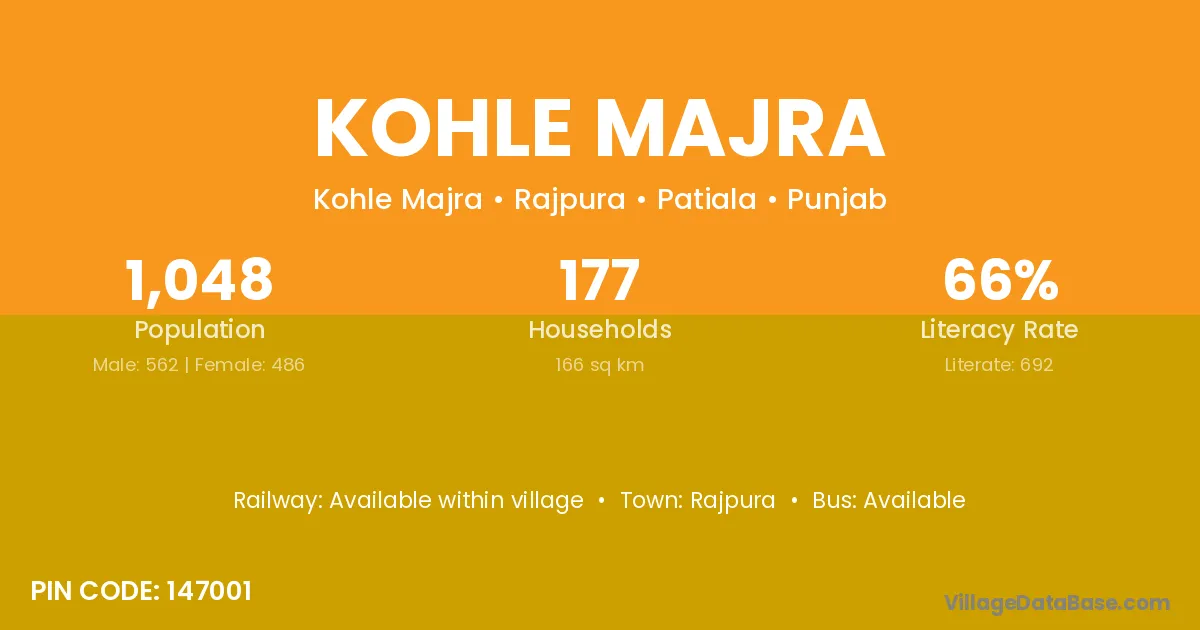 Rajpura is the nearest town to Kohle Majra village for major economic activities