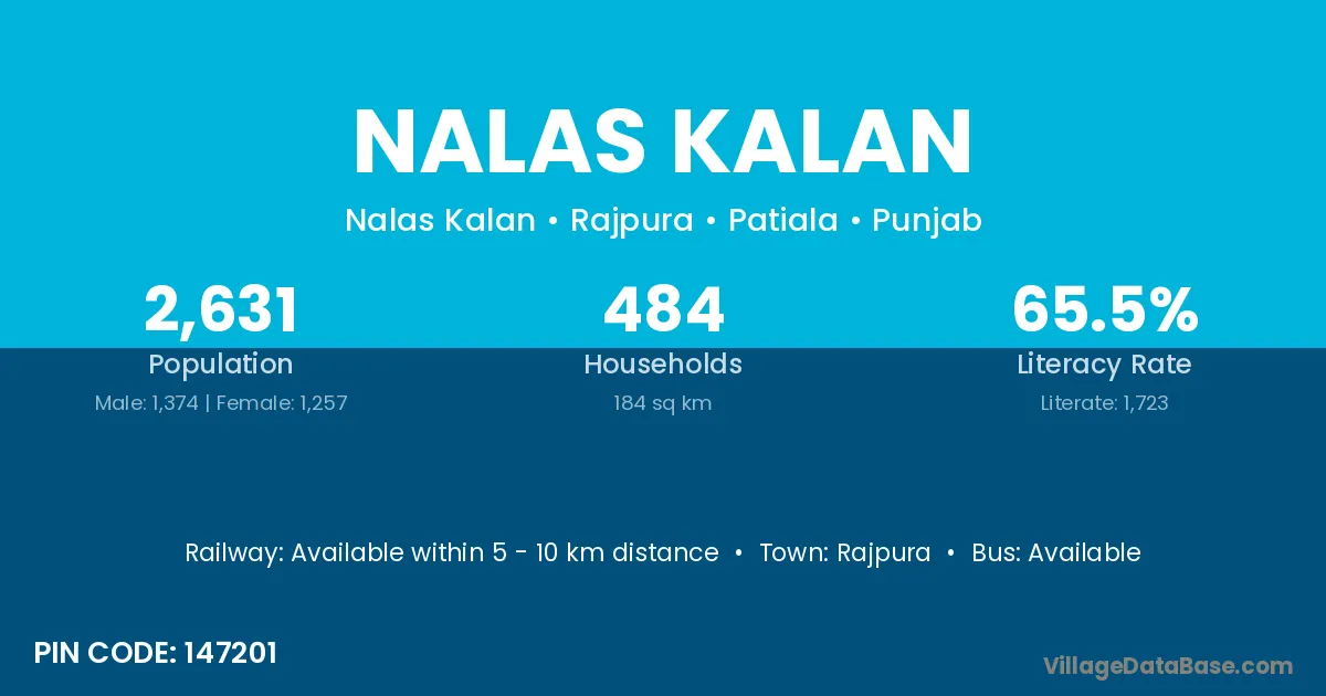 Rajpura is the nearest town to Nalas Kalan village for major economic activities