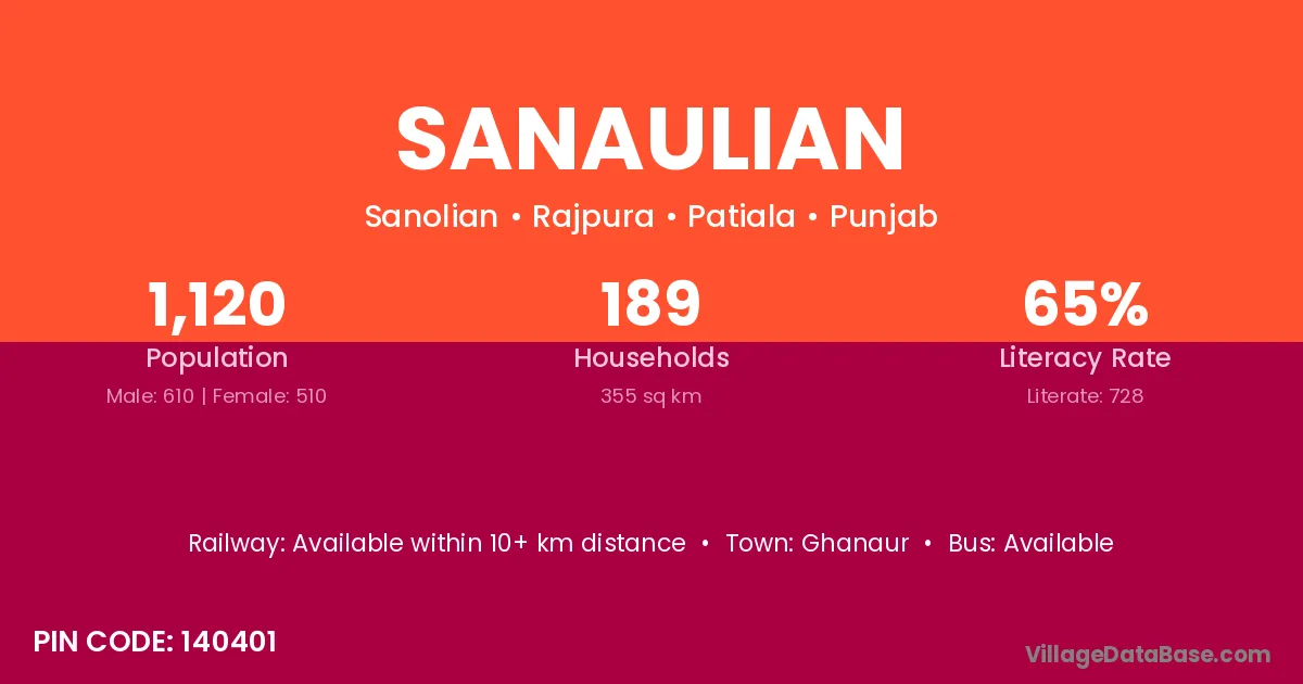 Sanaulian village has a total population of 1,120 people, of which 610 are males and 510 are females.