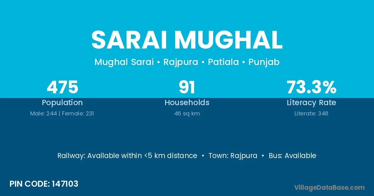 Rajpura is the nearest town to Sarai Mughal village for major economic activities