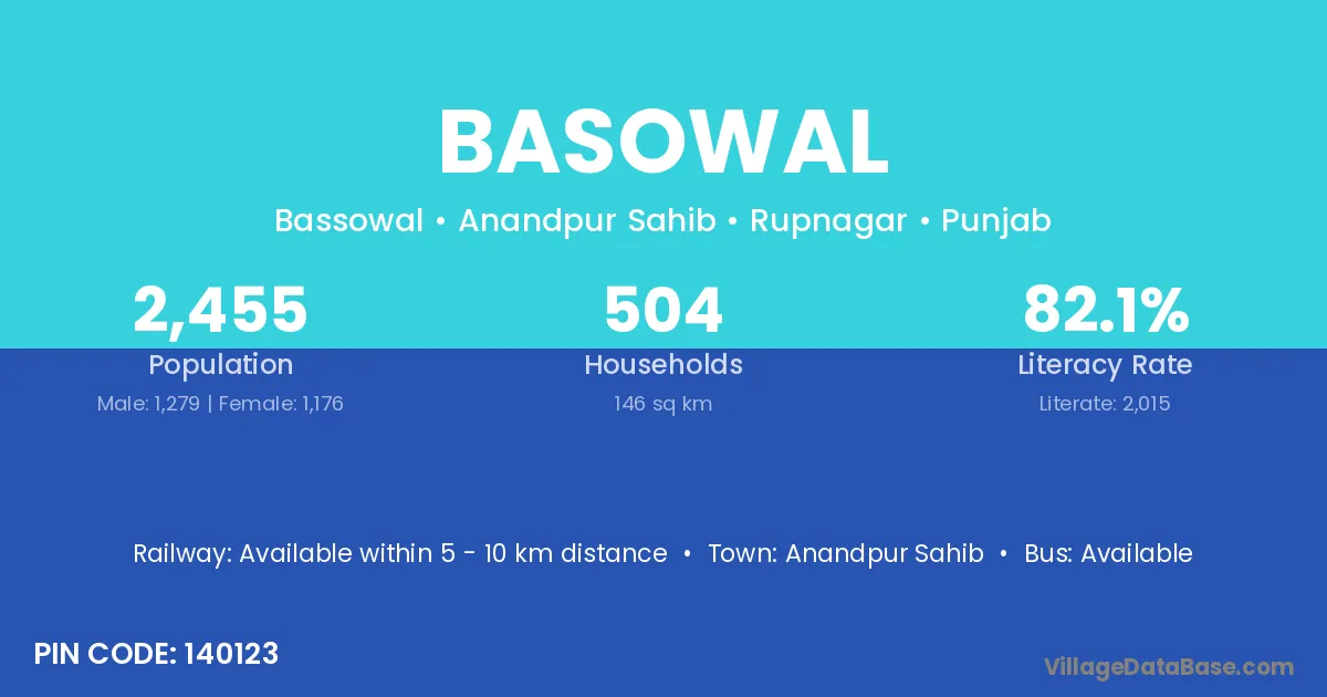 Basowal village has a total population of 2,455 people, of which 1,279 are males and 1,176 are females.