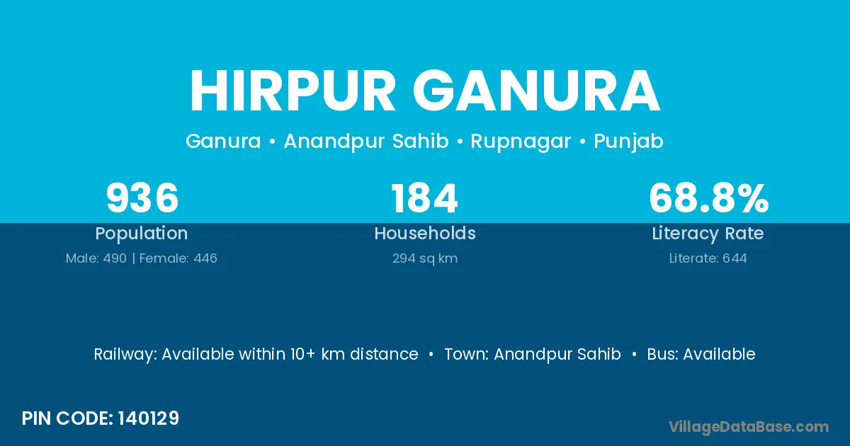 Anandpur Sahib is the nearest town to Hirpur Ganura village for major economic activities
