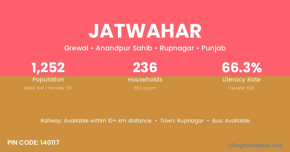 Rupnagar is the nearest town to Jatwahar village for major economic activities