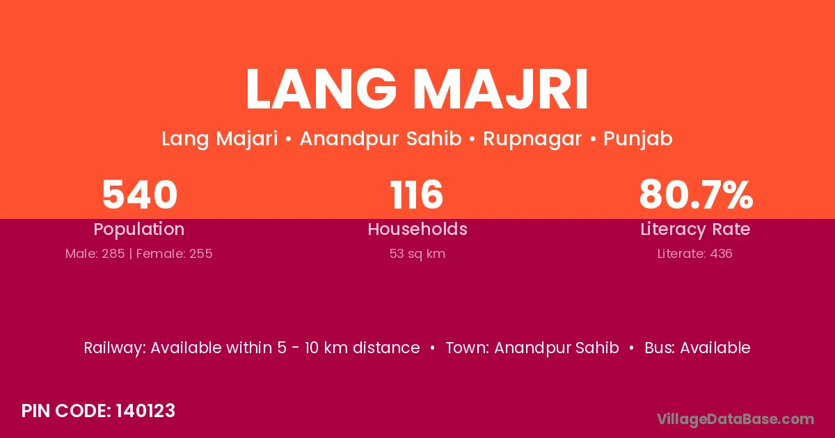 Anandpur Sahib is the nearest town to Lang Majri village for major economic activities