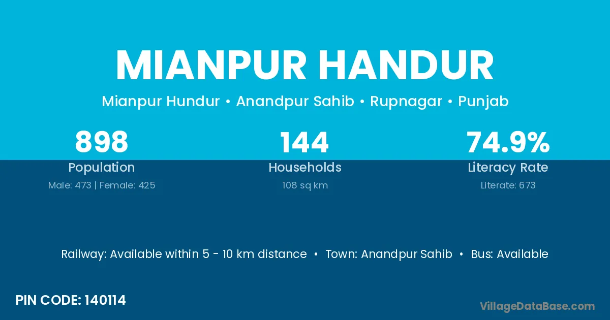 Anandpur Sahib is the nearest town to Mianpur Handur village for major economic activities