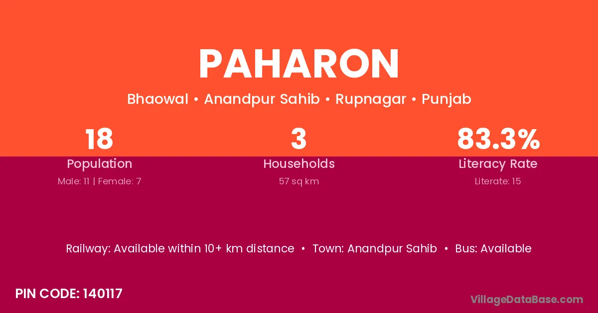 Paharon village has a total population of 18 people, of which 11 are males and 7 are females.