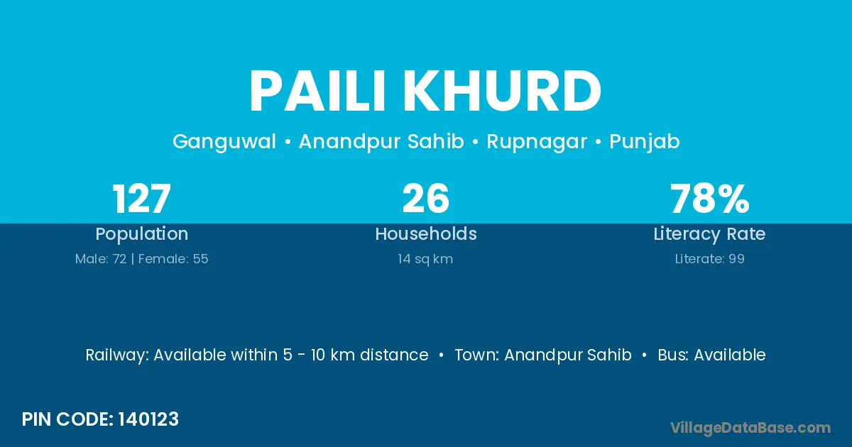Anandpur Sahib is the nearest town to Paili Khurd village for major economic activities