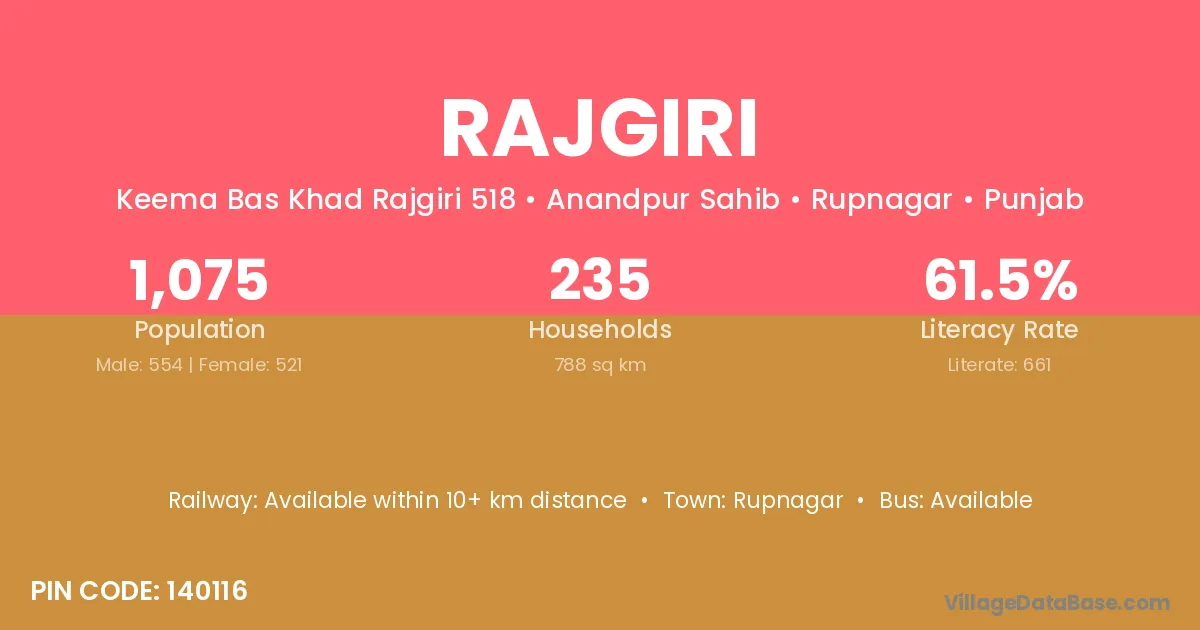 Rupnagar is the nearest town to Rajgiri village for major economic activities
