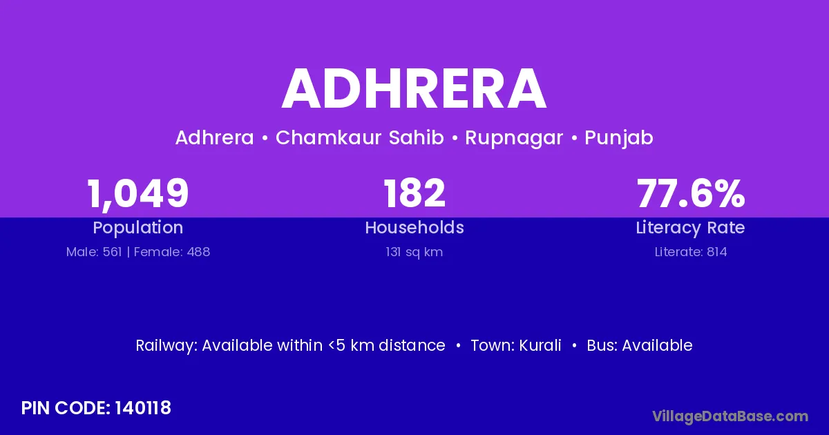 Kurali is the nearest town to Adhrera village for major economic activities