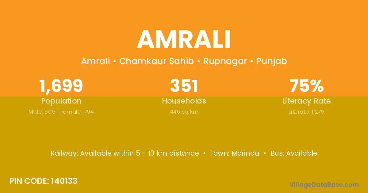 Amrali village has a total population of 1,699 people, of which 905 are males and 794 are females.