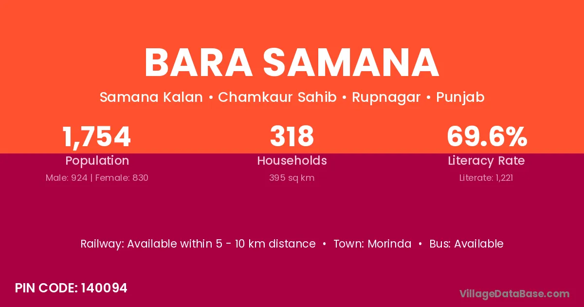Morinda is the nearest town to Bara Samana village for major economic activities