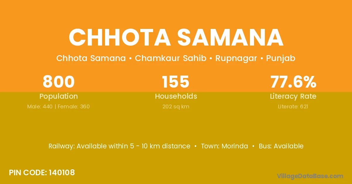 Chhota Samana village has a total population of 800 people, of which 440 are males and 360 are females.
