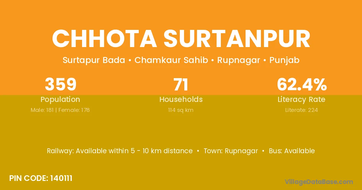 Chhota Surtanpur village has a total population of 359 people, of which 181 are males and 178 are females.