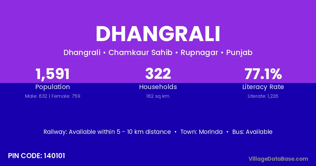 Morinda is the nearest town to Dhangrali village for major economic activities