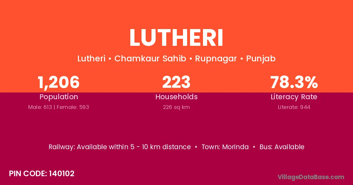 Lutheri village has a total population of 1,206 people, of which 613 are males and 593 are females.