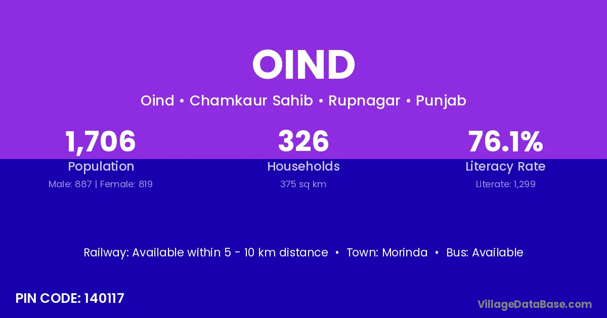 Morinda is the nearest town to Oind village for major economic activities