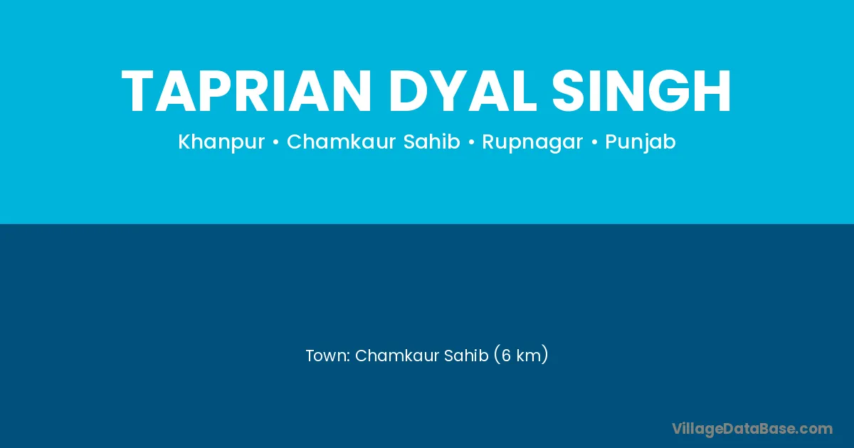 Chamkaur Sahib (6 km) is the nearest town to Taprian Dyal Singh village for major economic activities and is located approximately 6 km away.