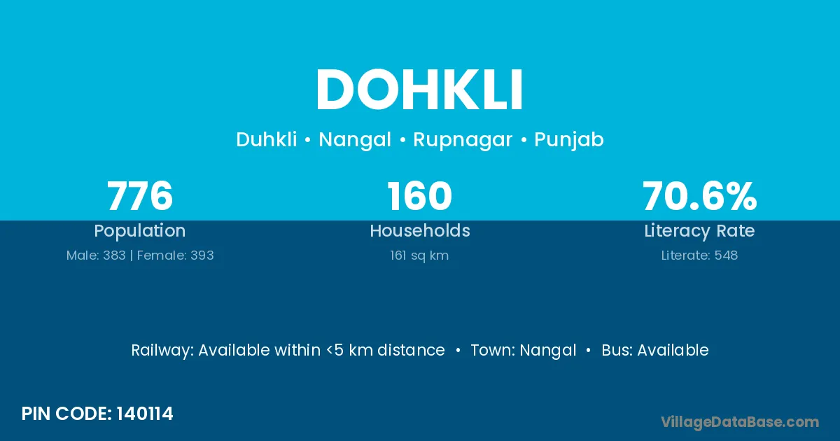 Nangal is the nearest town to Dohkli village for major economic activities