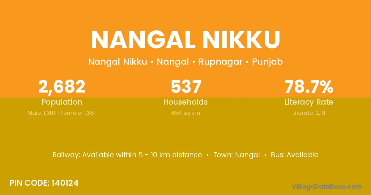 Nangal Nikku village has a total population of 2,682 people, of which 1,301 are males and 1,381 are females.