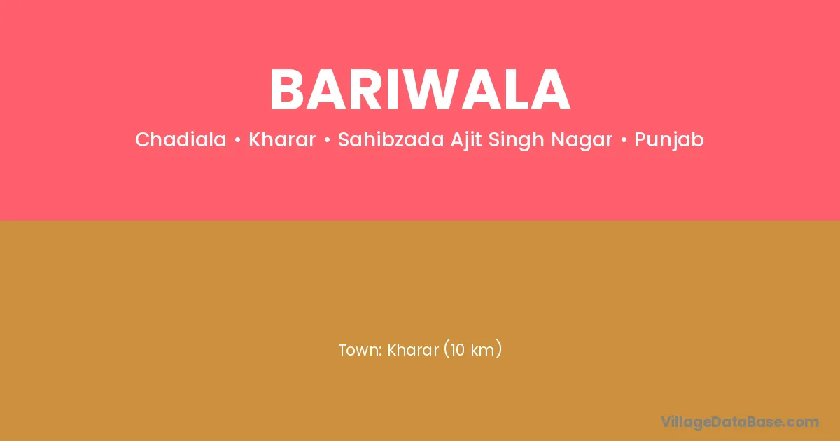 Kharar (10 km) is the nearest town to Bariwala village for major economic activities and is located approximately 10 km away.