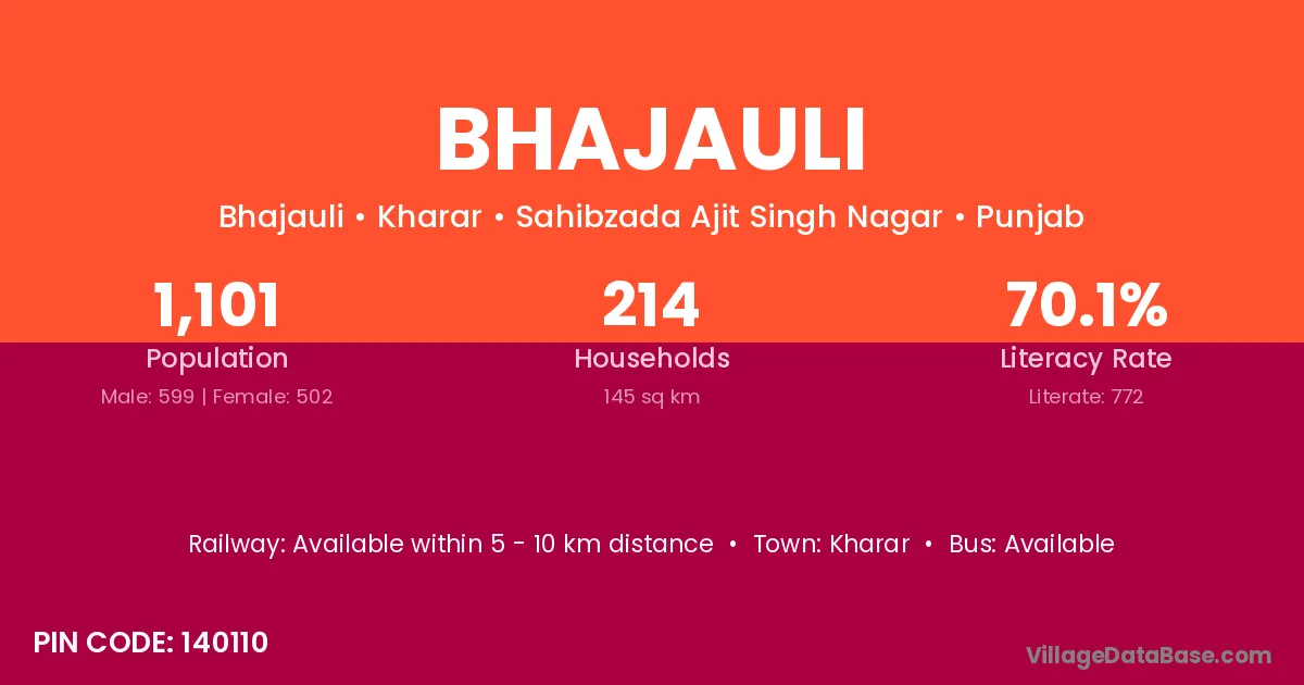 Bhajauli village has a total population of 1,101 people, of which 599 are males and 502 are females.