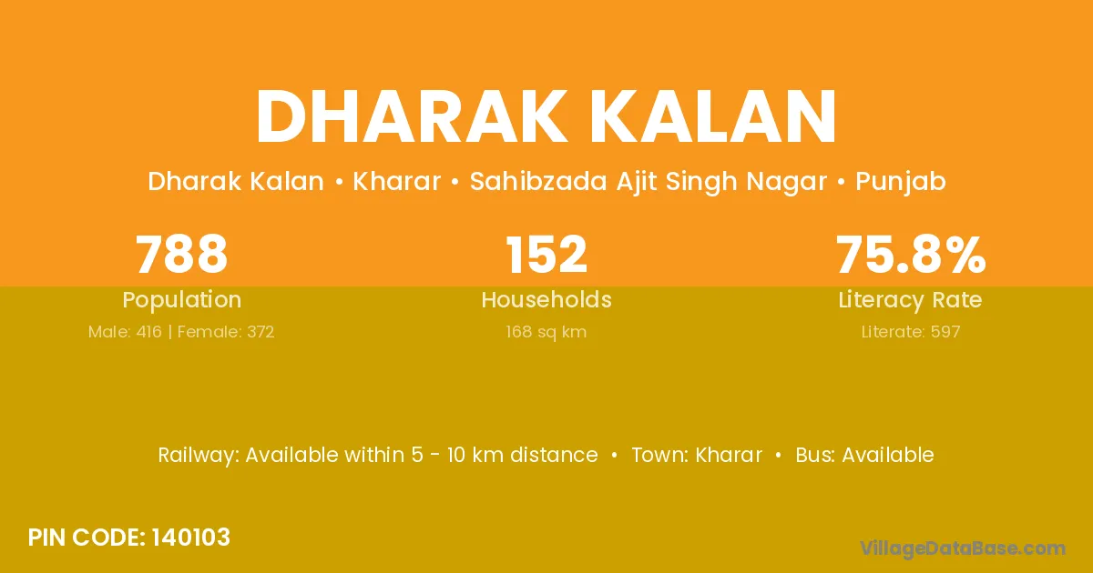 Kharar is the nearest town to Dharak Kalan village for major economic activities