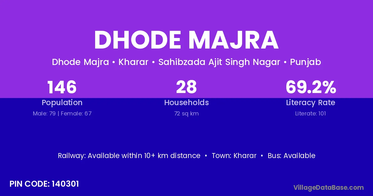 Kharar is the nearest town to Dhode Majra village for major economic activities