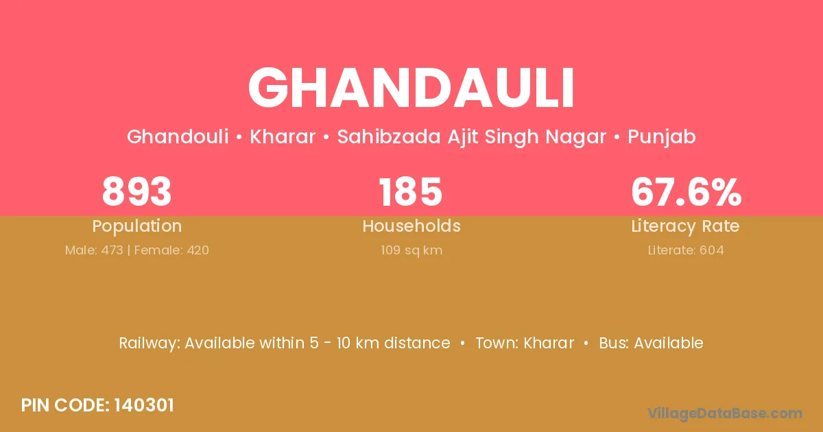 Ghandauli village is located in the Kharar Tehsil of the Sahibzada Ajit Singh Nagar district in Punjab .