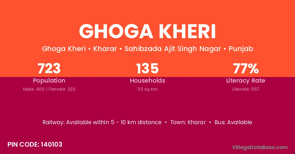 Kharar is the nearest town to Ghoga Kheri village for major economic activities