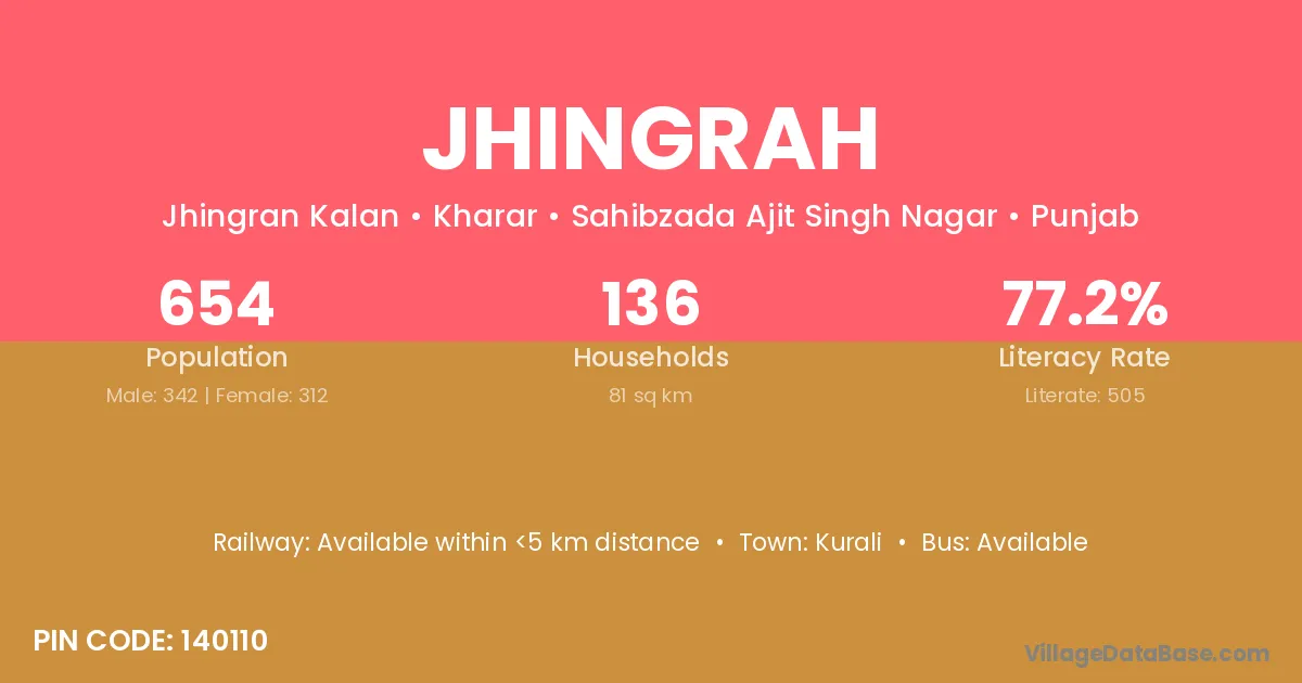 Jhingrah village is located in the Kharar Tehsil of the Sahibzada Ajit Singh Nagar district in Punjab .