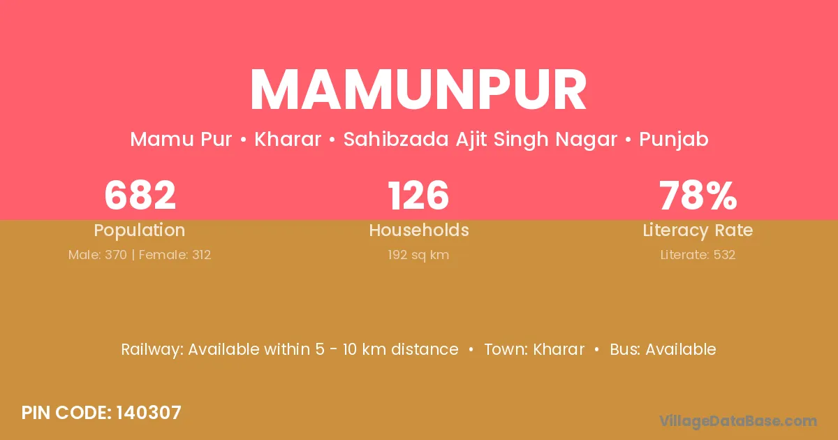 Kharar is the nearest town to Mamunpur village for major economic activities
