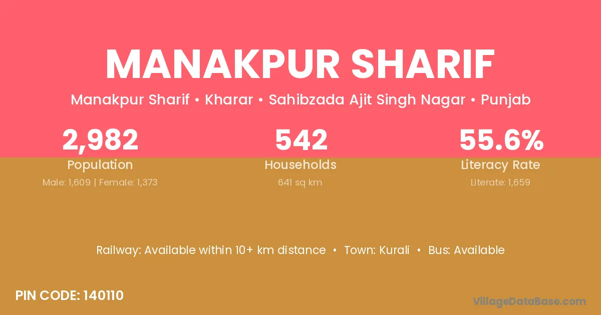 Kurali is the nearest town to Manakpur Sharif village for major economic activities