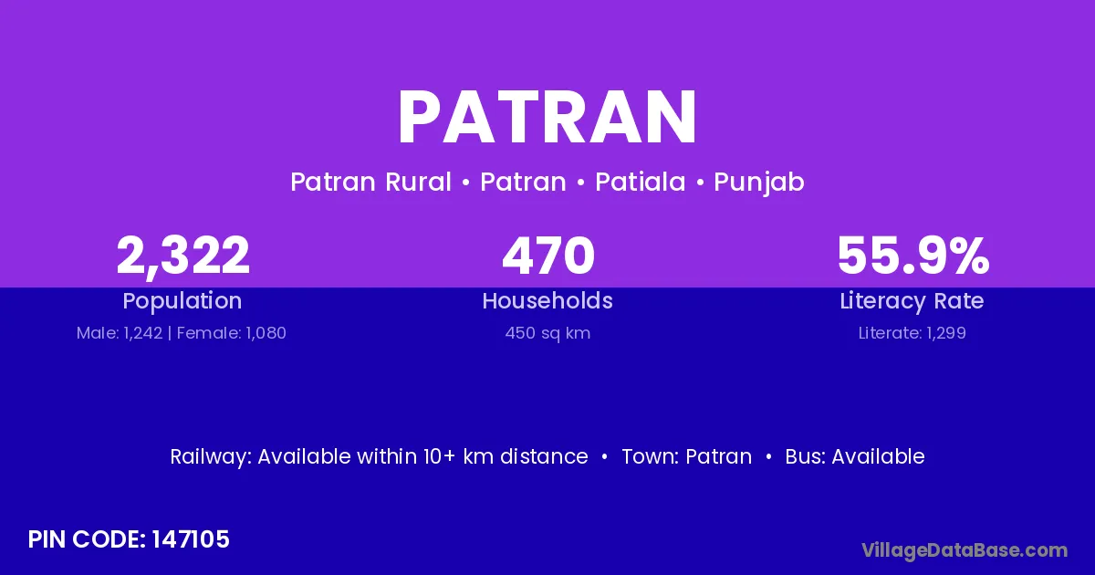 According to Census 2011 information, the village code of Patran village is 140307.