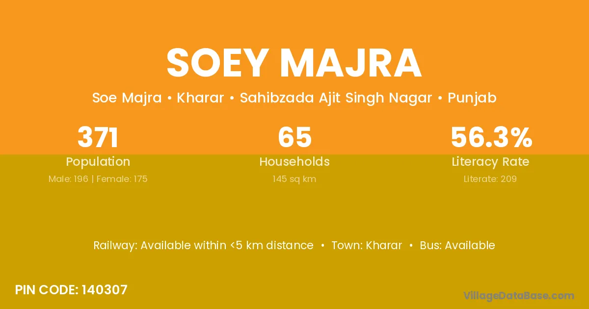 Kharar is the nearest town to Soey Majra village for major economic activities