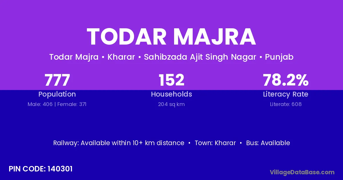 Kharar is the nearest town to Todar Majra village for major economic activities