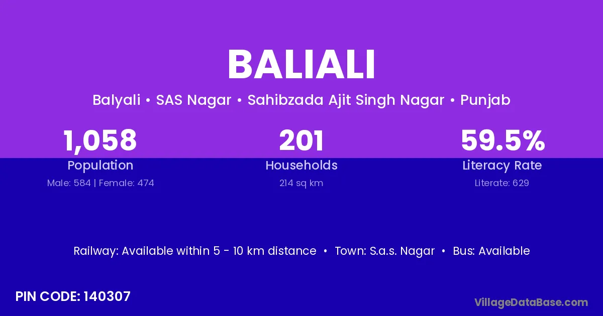 S.a.s. Nagar is the nearest town to Baliali village for major economic activities