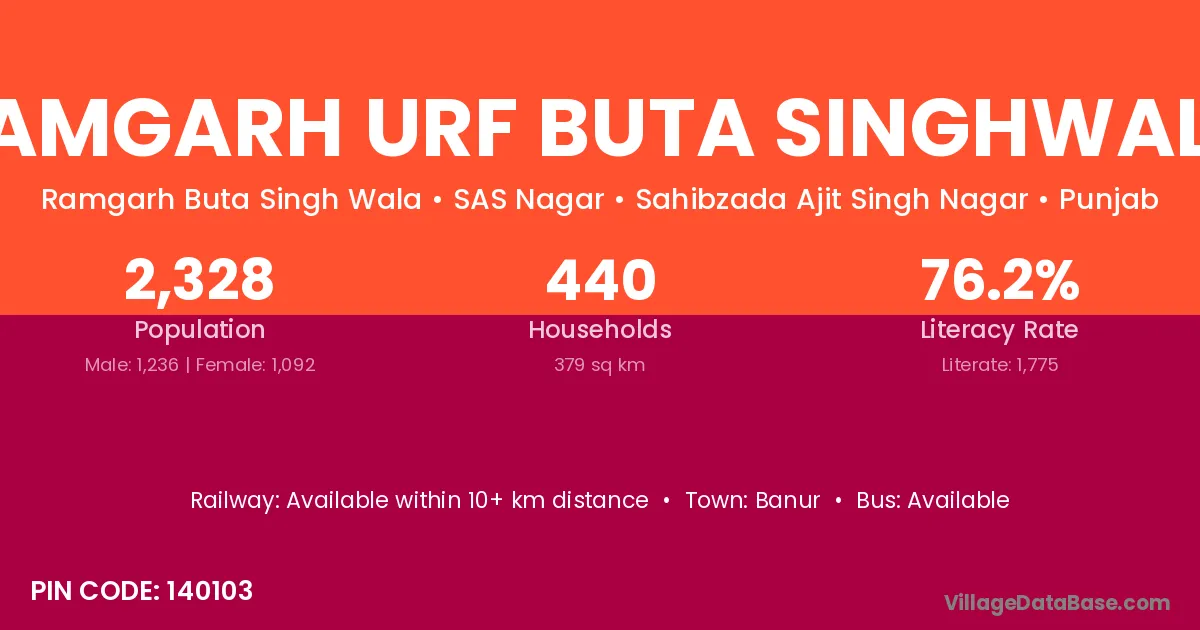 According to Census 2011 information, the village code of Ramgarh Urf Buta Singhwala village is 140103.