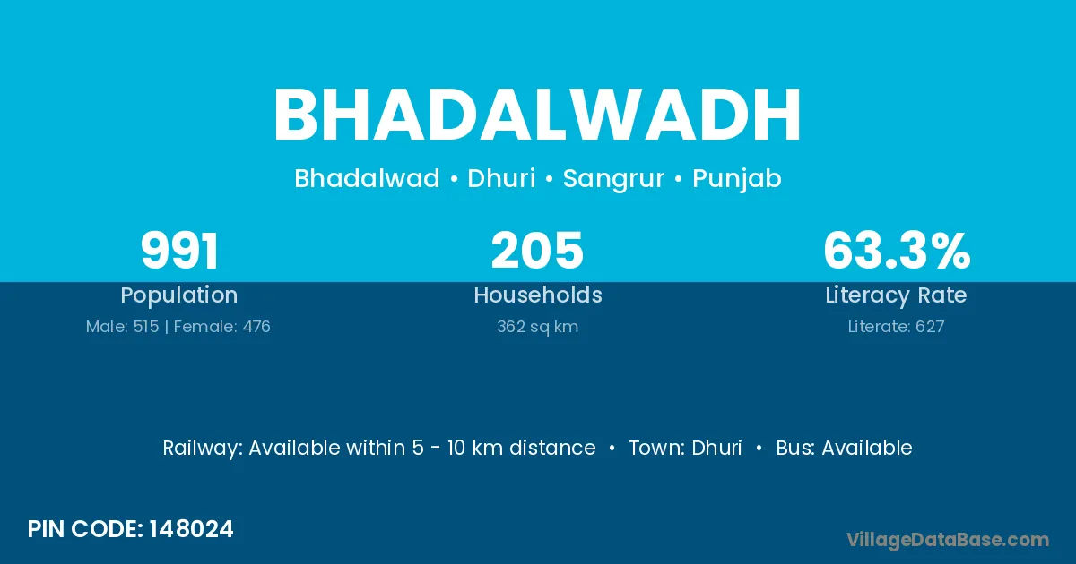 Dhuri is the nearest town to Bhadalwadh village for major economic activities