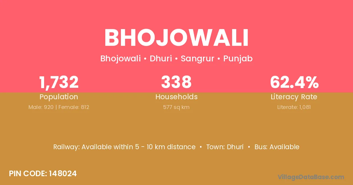 Dhuri is the nearest town to Bhojowali village for major economic activities