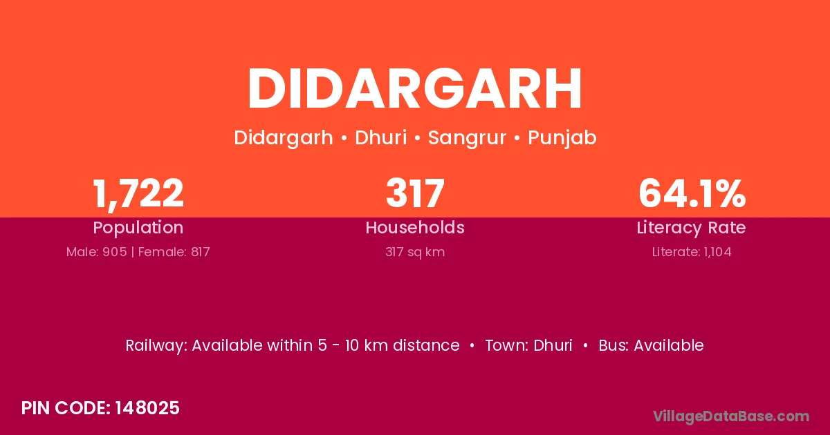 Dhuri is the nearest town to Didargarh village for major economic activities