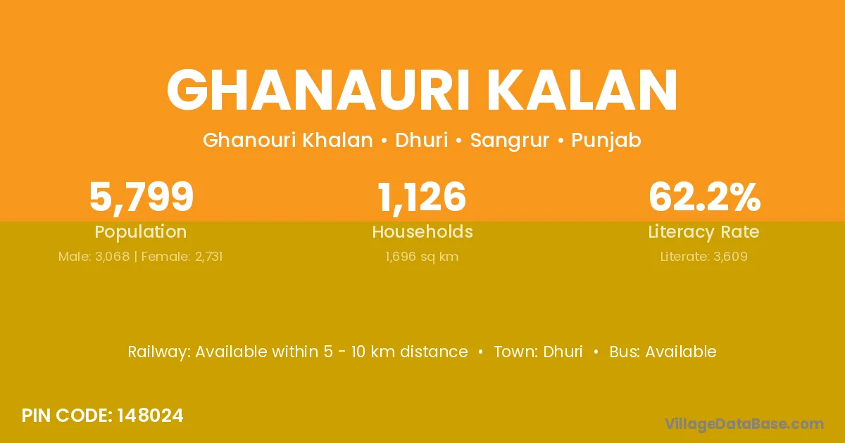 Ghanauri Kalan village has a total population of 5,799 people, of which 3,068 are males and 2,731 are females.